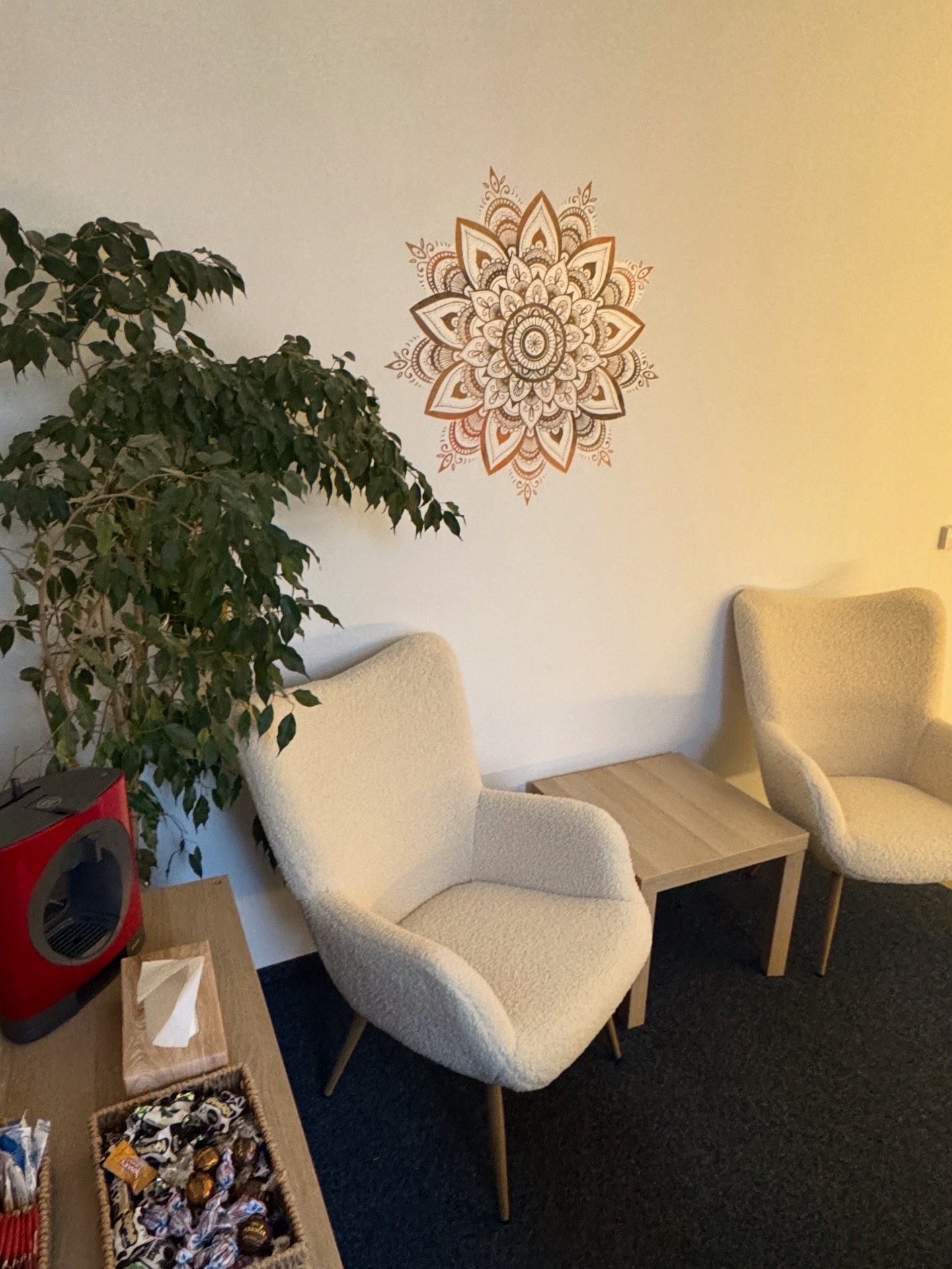 U nás jsou vám k dispozici, příjemná a pohodlná křesla, deky, čaj, káva, horká čokoláda nebo třeba i bonbóny. Prostě vše potřebné k tomu, aby se vaši klienti cítili v bezpečí a maximálně komfortně. ALLroom je tichý, klidný a diskrétní.